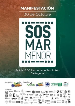La manifestación, con el lema “S.O.S. Mar Menor”, tendrá lugar, como decimos, el próximo miércoles a las 18.00 horas, con salida en el a Alameda de San Antón de Cartagena, a la altura del puente del Cartagonova, con el objetivo de encontrar una solución inmediata al grave deterioro del Mar Menor, evidenciado recientemente con la muerte de miles de peces y crustáceos en sus aguas, tras la grave catástrofe medioambiental sucedida en el Mar Menor,